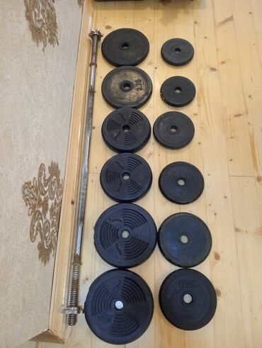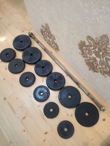 Qantel, qrif (prised üçün) və 66 kg ağırlıqlar (blinı) qarajsan cekulib shekiller, tozlu gorsenir.