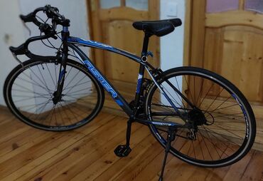 - Təkərlər: 700C ölçülü, nazik şosse şinləri – sürətli asfalt sürüşü üçün