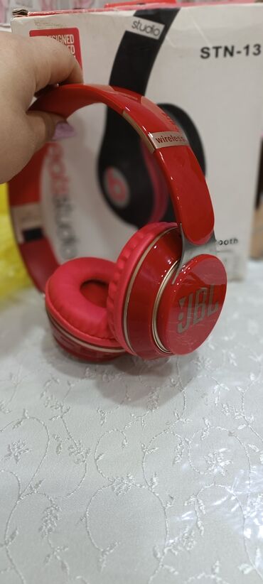 - Dizayn: Üstü parlaq qırmızı, qulaqüstü (over-ear) konstruksiya, yumşaq yastıqlı qulaqcıqlar, tənzimlənən tağ