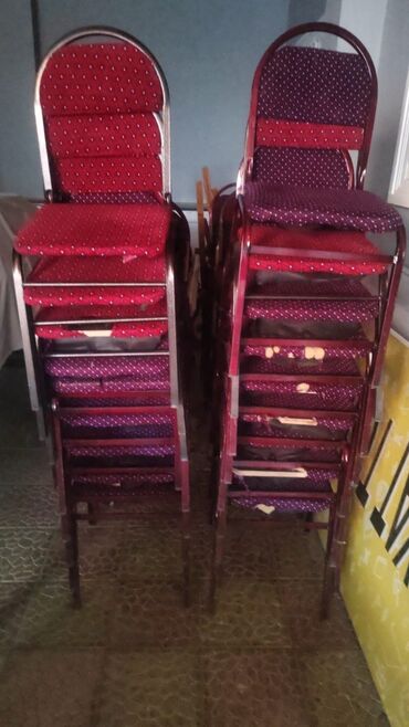 Masa taxtadandır (möhkəm və yüngül), stul isə dəmir karkaslı və yumşaq oturacaqlıdır.