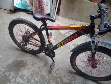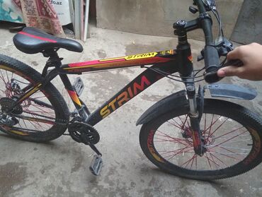 - Təkərlər: 26" dişli off-road şinlər, qırmızı şpislər və STRIM brendli disklər
