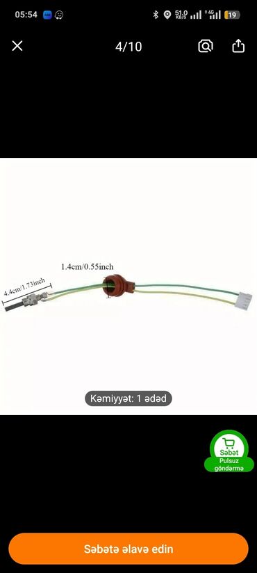 - Ölçülər şəkillərdə göstərilib: anod hissənin ümumi uzunluğu təqribən 4.4 sm; keçid rezininin diametri təxminən 1.4 sm.