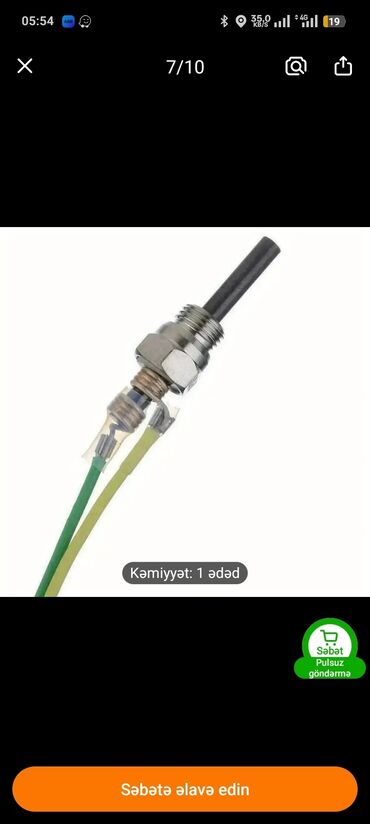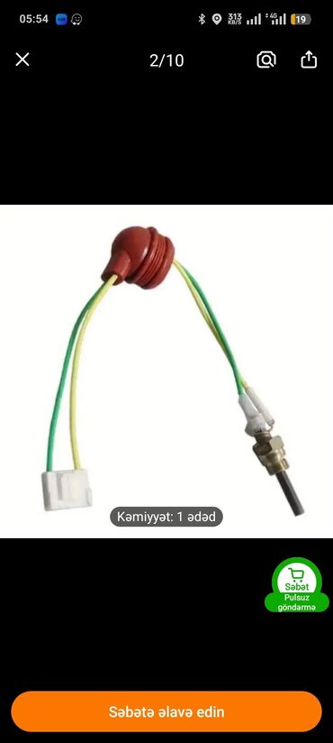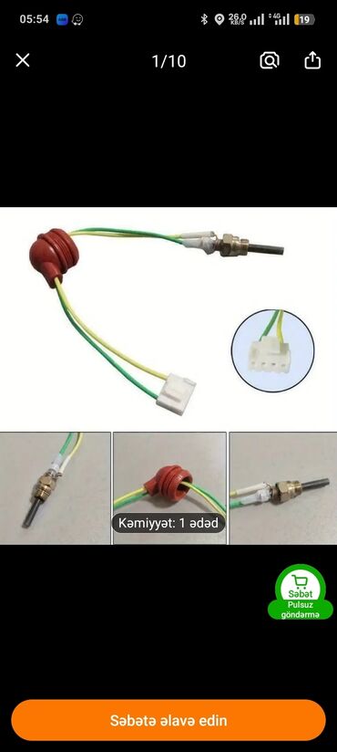 - Set tərkibi: vintli anod çubuğu (metall korpuslu fitinq və kontrqayqa ilə), izolyasiyalı iki naqil (yaşıl/sarı), silikon kipləşdirici qapaq və 2x pinli plastik konnektor.