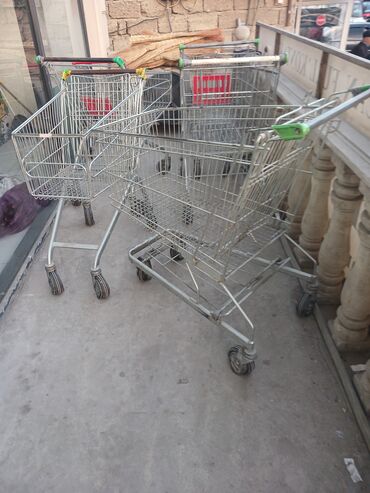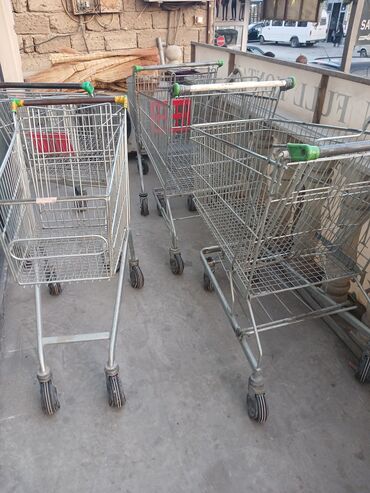 Mağaza/supermarket üçün alış-veriş səbətləri və arabaları - Material: möhkəm plastik karkas, metal elementlərlə gücləndirilmiş torvari yan panellər - Rəng: qara-yaşıl - Təkərlər: 360° fırlanan, sə...