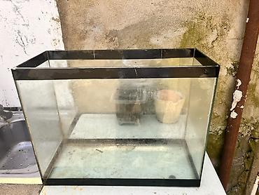 Şüşə akvarium - Material: qalın şüşə, üst və alt künclərdə