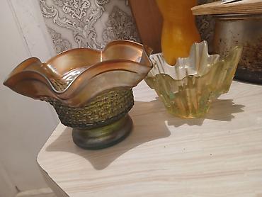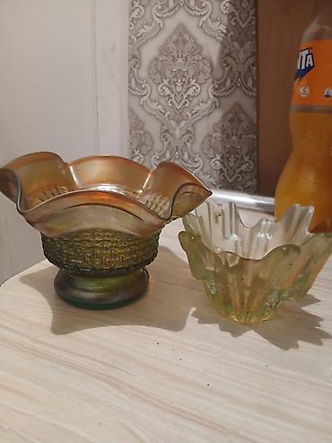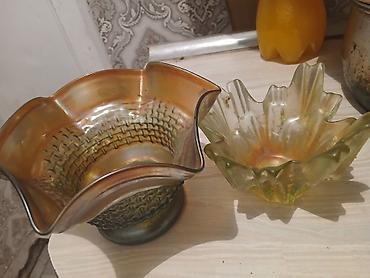 Şüşə dekor qabları – 2 ədəd dəst - Material: qalın, rəngli şüşə -