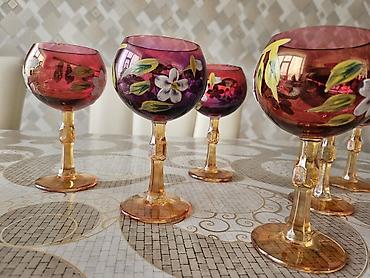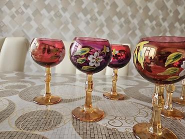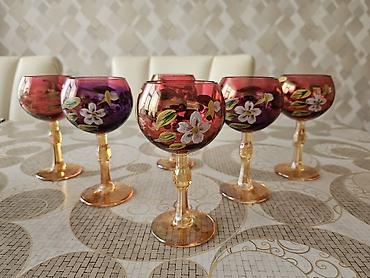 Rəngli büllur şərab bokalları dəsti - Say: 6 ədəd - Rənglər: qırmızı, yaşıl, mavi, kəhrəba, tünd qəhvəyi/şabalıdı, qarışıq tünd ton - çox qədimidir