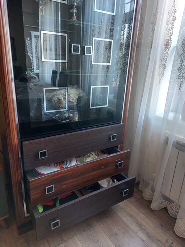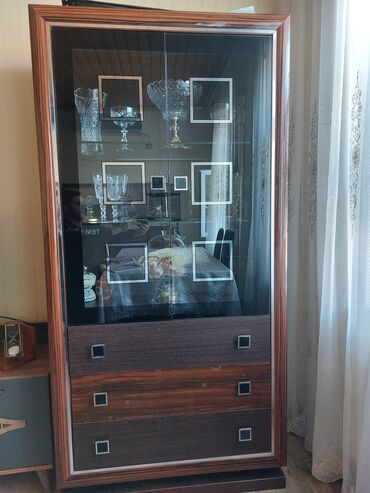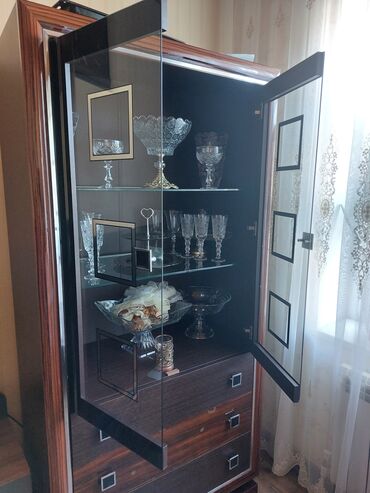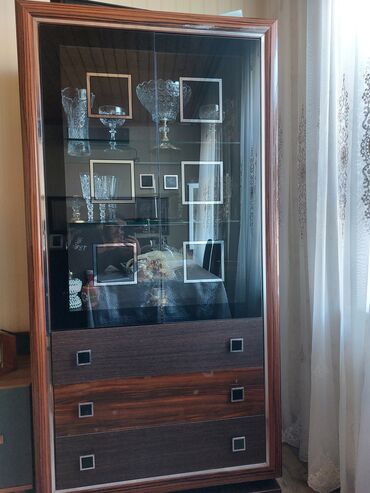 İstənilən qonaq otağı və ya yemək otağı interyerinə uyğun, praktik və dekorativ vitrin-bufet. İstifadə olunmasına baxmayaraq əla vəziyyətdədir.
