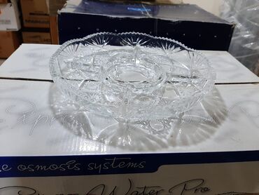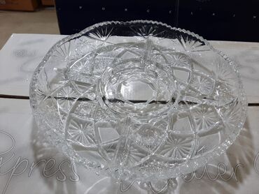 Şüşə/qab-qacaq: Kəpəkli naxışlı şüşə şirniyyat/fruit tabaqları dəsti, çərəz qabları