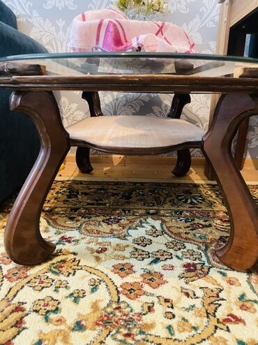 Şəffaf şüşə səthli və qəhvəyi taxta ayaqlı zərif künc masa. Bu masa, müasir və klassik interyerləri birləşdirən stilə malikdir. Şüşə səthi asanlıqla təmizlənir, taxta ayaqlar isə davamlılığı təmin edir. Masa, kiçik əşyaları yerləşdirmək və ya otaqda dekorativ element kimi istifadə etmək üçün idealdır. Onun erqonomik dizaynı hər hansı bir küncə mükəmməl uyğun gəlir və məkanı optimallaşdırır. Bu masa həm ev, həm də ofis mühiti üçün əla seçimdir.Masanın alt hissəsində əlavə rəf mövcuddur.Masanın ayaqları oyma naxışlarla bəzədilmişdir.Masanın şüşə səthi oval formadadır.Masanın taxta hissəsi parlaq örtüklüdür.Masanın künc dizaynı məkan qənaətinə kömək edir.Masanın şüşə səthinin kənarları hamarlaşdırılmışdır.Masanın ayaqları möhkəm dayaq təmin edir.Masa mərkəzi hissədə dekorativ əşyalar yerləşdirmək üçün uyğundur.Masanın qəhvəyi rəngi isti atmosfer yaradır.Masanın ölçüsü kiçik otaqlar üçün idealdır.Masa yüngül çəkiyə malikdir.Masanın şüşə səthi qalın və davamlıdır.Masa montajı asandır.Masa çoxfunksiyalı istifadəyə malikdir.Masa təmizlənməsi sadədir.Masa hər növ interyerə uyğun gəlir.Masa zərif görünüşə malikdir.