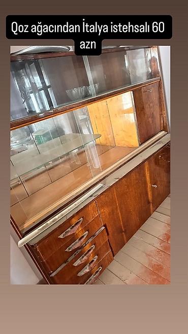 - Qoz ağacından vitrin-bufet, İtaliya istehsalı. Şüşəli vitrin bölməsi, içində şüşə rəflər, aşağıda çekmecələr və qapalı dolab hissələri, metal tutacaqlar. Qiymət: 60 AZN. digeri 50 azn