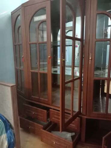 - Quruluş: 4 bölməli üst vitrin hissə, aşağıda geniş çekmecələr və qapalı bölmələr