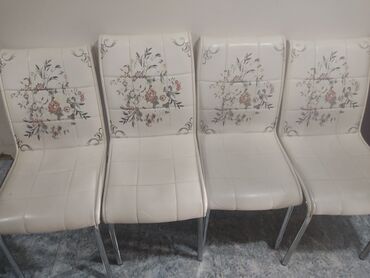 Mətbəx/yemək masası və stul dəstləri, həmçinin iş masası - 4 nəfərlik yemək masası dəsti: ağ rəngdə, sadə və möhkəm konstruksiya. Metal karkaslı stullar, oturacaq və bel hissəsi süni dəri ilə üzlə...