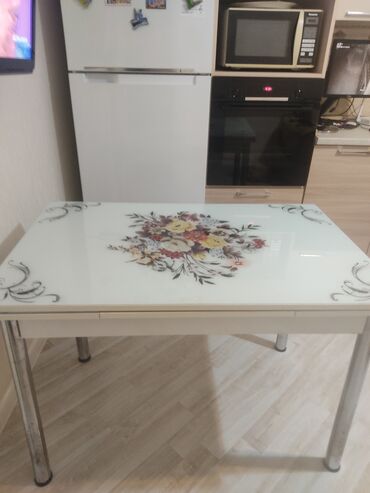 Masa ve 4stul birlikde satılır Material möhkemdir. Stulların üzeri deridir. Seliqeli istifade olunub. Hec bir qırıq yoxdur.