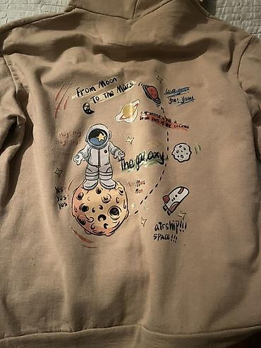 Bej rəngli kapüşonlu svitşört – kosmos temalı