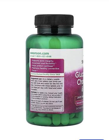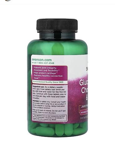 Swanson Glucosamine + Chondroitin + MSM – oynaq və qığırdaq sağlamlığını dəstəkləməyə kömək edən populyar bir birgə əlavəsidir. O, zədələnmiş və ya yaşla bağlı oynaq narahatlığını dəstəkləmək üçün üç əsas maddəni bir araya gətirir. Faydalarını hiss etmək üçün müntəzəm uzunmüddətli istifadə lazım ola bilər və hər kəs üçün eyni təsir göstərməyə bilər.