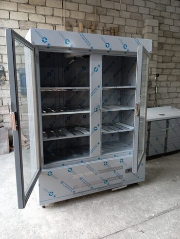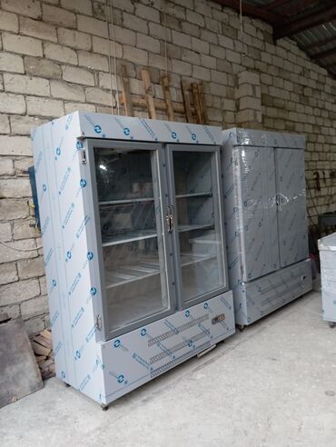 Paslanmayan metaldan hazırlanmış vitrin soyuducu. İçərisində bir neçə