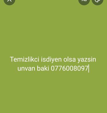 Bu nömrəye yazin 070 208 52 32 Ünvan 28 May dilarə əliyeva küçəsində yerləşir EVDƏ XADİMƏ XANIM VAR DAYƏ YANLIZ UŞAQLA MƏŞQUL OLACAQ İŞ SAATI 09.00 DAN 18.00 HEFDE 5 GÜN İŞDİR Maais 900 azn