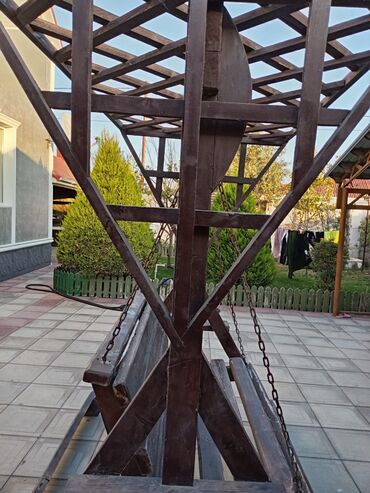 Komplektə daxildir: çərçivə, üst kölgəlik, zəncirlər və taxta oturacaq.