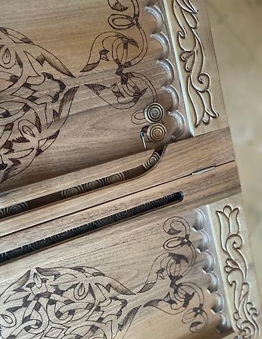 Nerd Taxtasi Cexolla - Material: Wabalid Aqaci.El iwi - Ölçü: iri ölçülü ikiqat (açılıb-bağlanan) taxta; kənarlarda zərif haşiyələr, daş yuvaları və hər iki başda zərif tutacaq relyefləri. - Daxil...