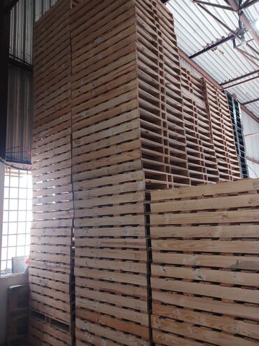 Taxta paletlər - Material: təbii ağac (şalban/taxta lövhələrdən yığma) - Konstruksiya: iki tərəfli lövhəli üst və alt hissə, mərkəzdə gücləndirici traverslər; çoxsaylı vint/mişar mismarı ilə bər...