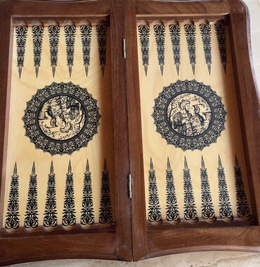 Ağacdan hazırlanmış ikiüzlü oyun dəsti – şahmat və nərd taxtası.