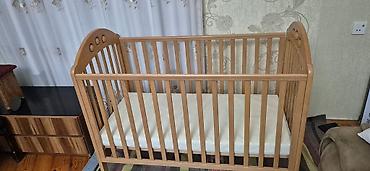 Uşaq beşiyi – taxta, klassik dizayn - Material: möhkəm taxta, açıq krem rəng - Ölçü: standart uşaq beşiyi ölçüləri (körpə üçün rahat yuxu sahəsi) - Konstruksiya: dörd tərəfi barmaqlı, təhlükəsiz v...