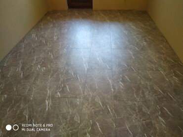- Daxili məkanlar üçün marmor effektli kafel döşəmə: boz-bej tonlarda, damar naxışlı, iri ölçülü plitələr düzgün xəttlər üzrə yığılaraq vahid səth yaradılıb. Otaq keçidləri və künclərdə perimetr səliqəli kəsimlərlə tamamlanıb.