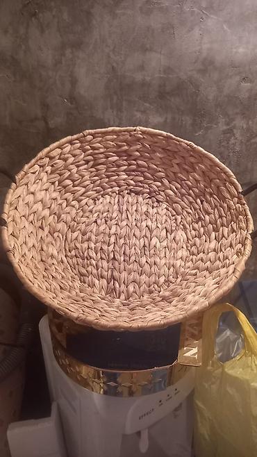 • Dairəvi, sapçasız toxuma səbət – sərt kənarlı, dərin kasa forması. Süfrə üçün çörək-meyvə qabı və ya ev dekoru kimi istifadə oluna bilər.