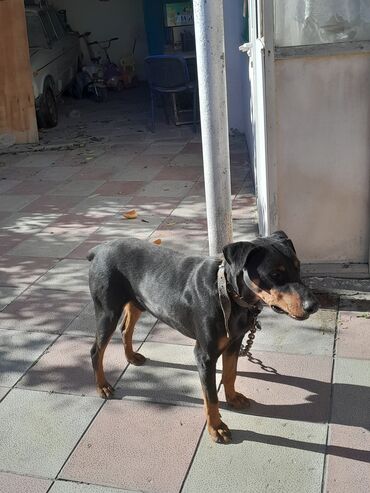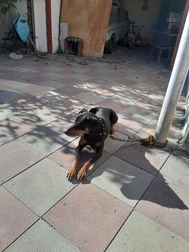 Doberman Pinscher cinsli it 2 eded biri diwi biri erkek cut wekilde satilir 600 azn tek tek isdeyen olarsa 300-300 - Rəng: qara-qəhvəyi (tan işarələr) - Qulaqlar dik, atletik və çevik bədən q...