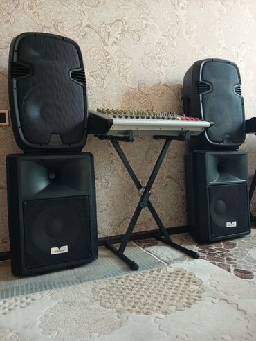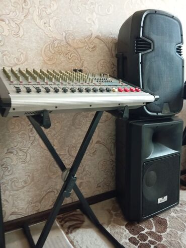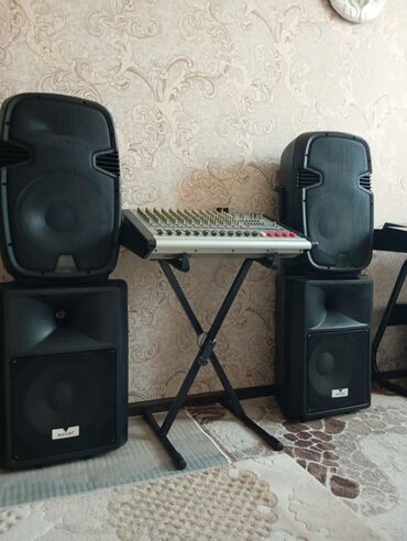 Səhnə və tədbirlər űçűn səs sistemi,birlikdə təqdim olunur: 4 ədəd akustik kolonka + YGY powered mikser + stend. Tam islekdir.