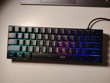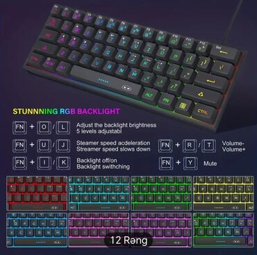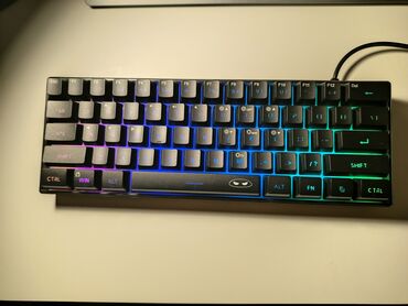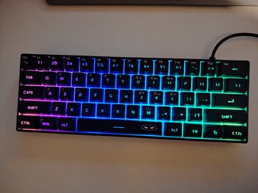 MageGee T591 mexaniki klaviatura - Kompakt 60% düzən: F1–F12 funksiyaları, ox düymələri və zəruri qısayollar üst qatlarda yerləşdirilib. - USB ilə qoşulma (kabeli ayrılmır). - Mexaniki switçlər: s...