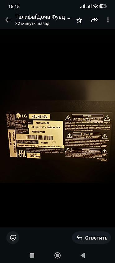- Model: 42LN540V-ZA (istehsal tarixi: 03/2014, Made in Korea)