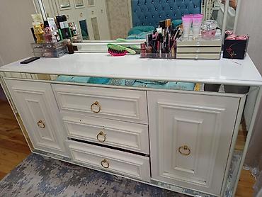 gözel veziyyetdinde yataq desti termo tumbalar 6 qapili şvaner başı taclı kravatın qabagında sandıqçası termosu 2metr. qabagindada bezemek ucun dufli stolu 4ahın mebelidi destdi 3mine alınıb pul la...