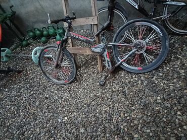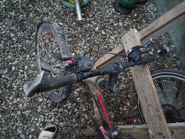 Velosiped ehtiyat hissələri və komplekt detallar - Çərçivə: amortizatorlu, arxa yaylı qara çərçivə (MTB tipli). - Asqı və çəngəl: ön çəngəl hissələri, arxa asqı yayı. - Təkərlər: bir neçə 26" təkə...