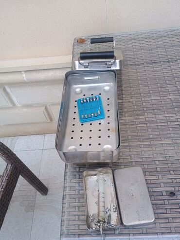 Məlumat: Paslanmayan poladdan tibbi alət sterilizatoru və şprislər dəsti.