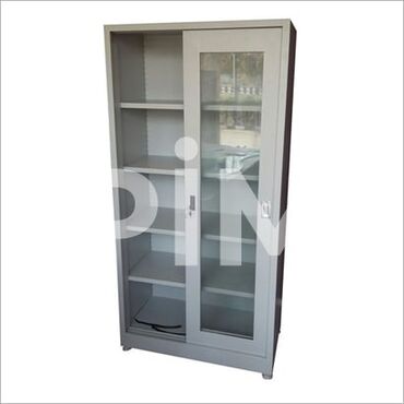 - Tibbi ləvazimat və sənəd saxlanması üçün şkaf; möhkəm metal gövdə, sürüşən şüşə qapılar.
