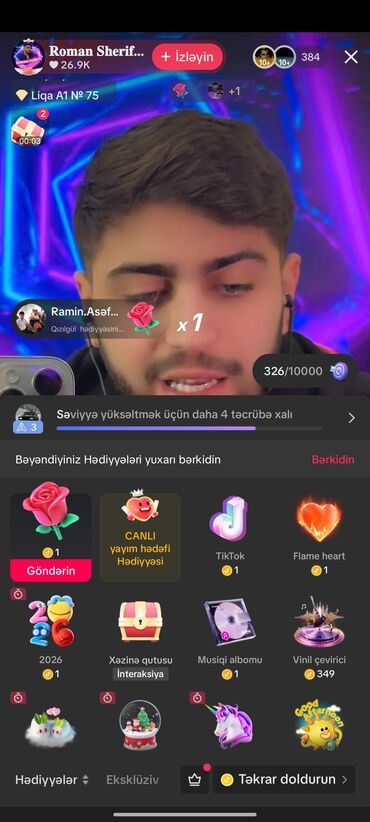- Canlı yayımlarda hədiyyələr və interaksiya funksiyaları aktivdir