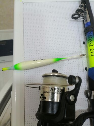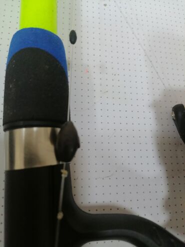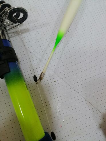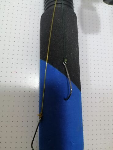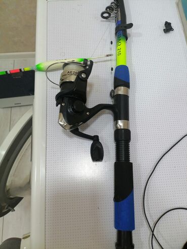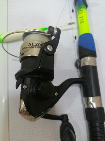 Balıqçılıq üçün 2 ədəd qamış və çarx seti - Uzun gövdəli iki ədəd qamış: qrafit/kompozit gövdə, keçid halqaları ilə. Ucları həssas, birində parlaq sarı işarələmə var. - Hər ikisi mavi rəngli fırla...