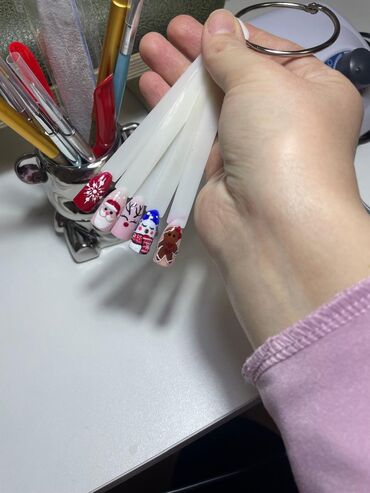 Manikür və şellak,gellak,dırnaq qaynağı - Aparatnı və klassik manikür,frenç,qızılı parıltı və folqa effektləri - Uzadılmış stiletto və kvadrat formalar - Ağ-qızılı ombre,kontur xətləri,mavi aksentl...
