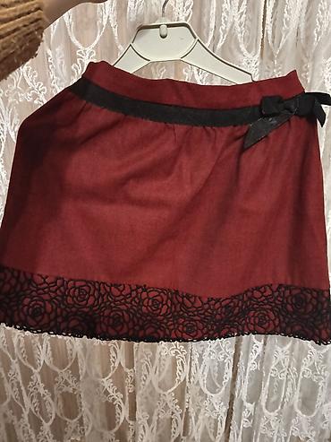Ətək: qırmızı rəng, Goose markası, alt hissəsi qara işləməli beli bantlıdır. Çəhrayı ətək və kofta 2-3 dəfə geyinilib, təzə kimidir.