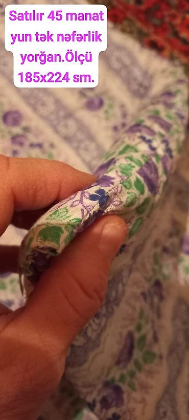 • 3 ədəd yun yorğan , ölçü 200×150 – hər biri 20 manat. • 2 ədəd qaz tükündən yastıq, ölçü 70×70 – hər biri 15 manat. • 40 kq təbii qoyun yunu – 240 manat. Hamısı təmizdir, səliqəli saxlanılıb. Ay...