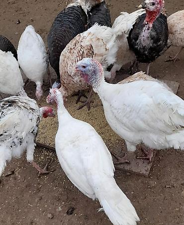 Məhsul: Hinduşka sürüsü Təsvir: - Təbii şəraitdə bəslənmiş, müxtəlif rəngdə (qara-boz zolaqlı, ağ, qızılı-qəhvəyi) hinduşkalar. - Sürüdə həm erkək, həm dişi quşlar var; yumurta və damazlıq üçün uy...