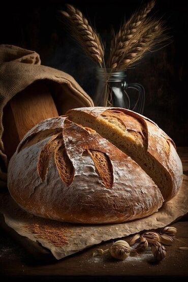 - Dairəvi kənd çörəyi (boule tipli): Qalın qabıqlı, dərin yarıqlı, aromatik buğda notları ilə. Uzun fermentasiya sayəsində elastik iç qat və zəngin dad verir; dilimlənməyə, brusketta və sendviçlərə uyğundur.