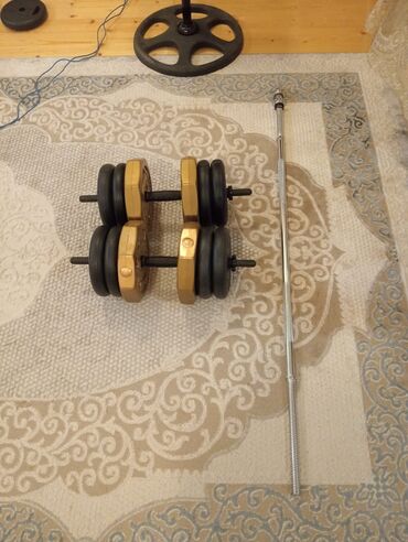 Kettler firmasının ştanqa, iki qanteli və əldə düzəlmə dayaqları satılır. Əla vəziyyətdədi, çox az işlənilib. Ştanqa daşla birgə 47 kilo, qantellərin biri 9 kilo. Son qiymət 300 manat.