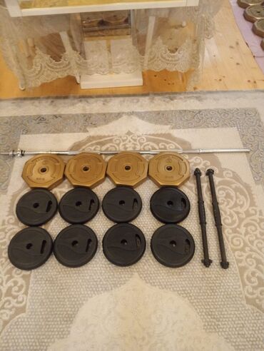 Ağırlıq ştanqası komplekti Diqqətlə oxu. F-50 modeli, 50 kq-lıq ştanq satılır, işlənmişdir lakin çox yaxşı vəziyyətdədir, düşdüyü yeri zədələmir, keyfiyyətli möhkəm rezindəndir, və pas atmır. Q...