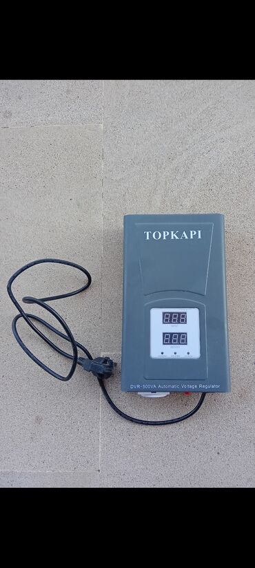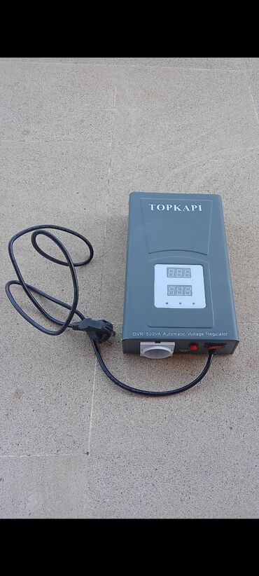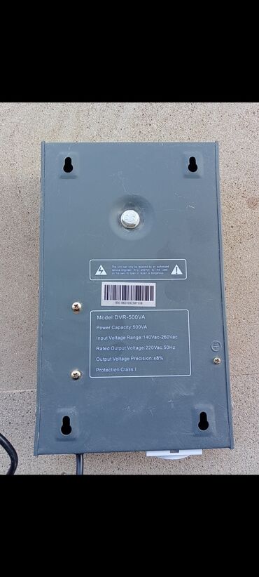Etiketdəki məlumatlar cihaz üzərindədir: TOPKAPI, “DVR-500VA Automatic Voltage Regulator”, SN barkodla.
