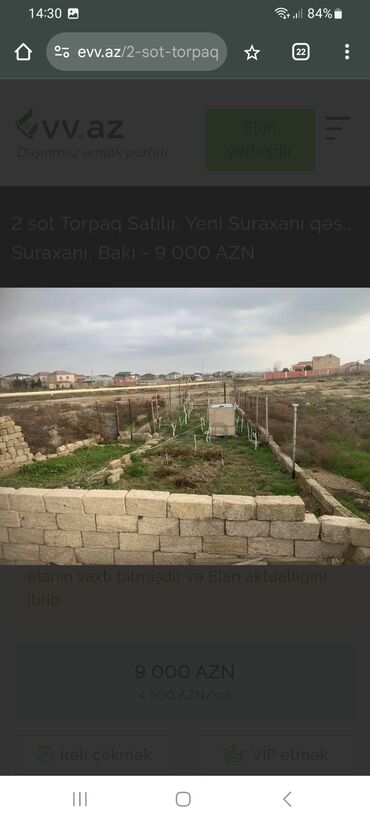 Maştağa albaliliq 2 de 3 sota yaxin torpağimi satiram kupca xüsusi mülkiyet tikinti teinatli yaşayiş menteqeleri torpagidi hasar duvar yeni çekdirmişem isiq saqçaci qoyulub sotu 6500 azn torpagin k...