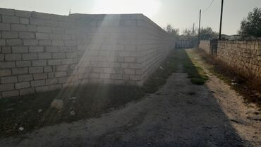Satış üçün torpaq sahəsi - Hündür daş hasarla əhatələnmiş, dəmir darvazalı sahə - Daxilə çəkili təbii qaz xətti üçün borular küçə boyunca mövcuddur - Elektrik xətti və işıq dirəkləri küçədən keçir...