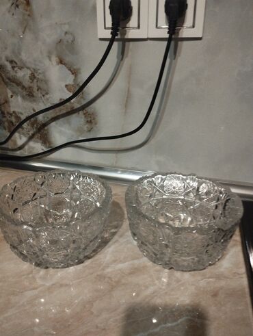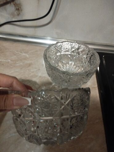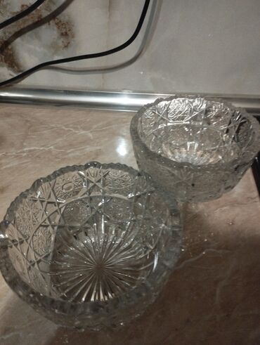Temiz Rusiya istehsali xrustal qablar. Onlar masanıza zərif bir görünüş qatmaq üçün idealdır, həm də meyvə, şirniyyat və ya digər qəlyanaltılar üçün istifadə edilə bilər. Böyük qab-1eded 40azn Kiçi...